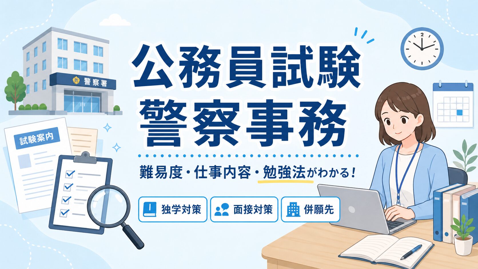 筆記は数的処理・判断推理を早めに始める。 体力は週2〜3回で継続する。 面接は志望動機を早めに整理する。 この3つを意識するだけでも、合格に近づきやすくなります。