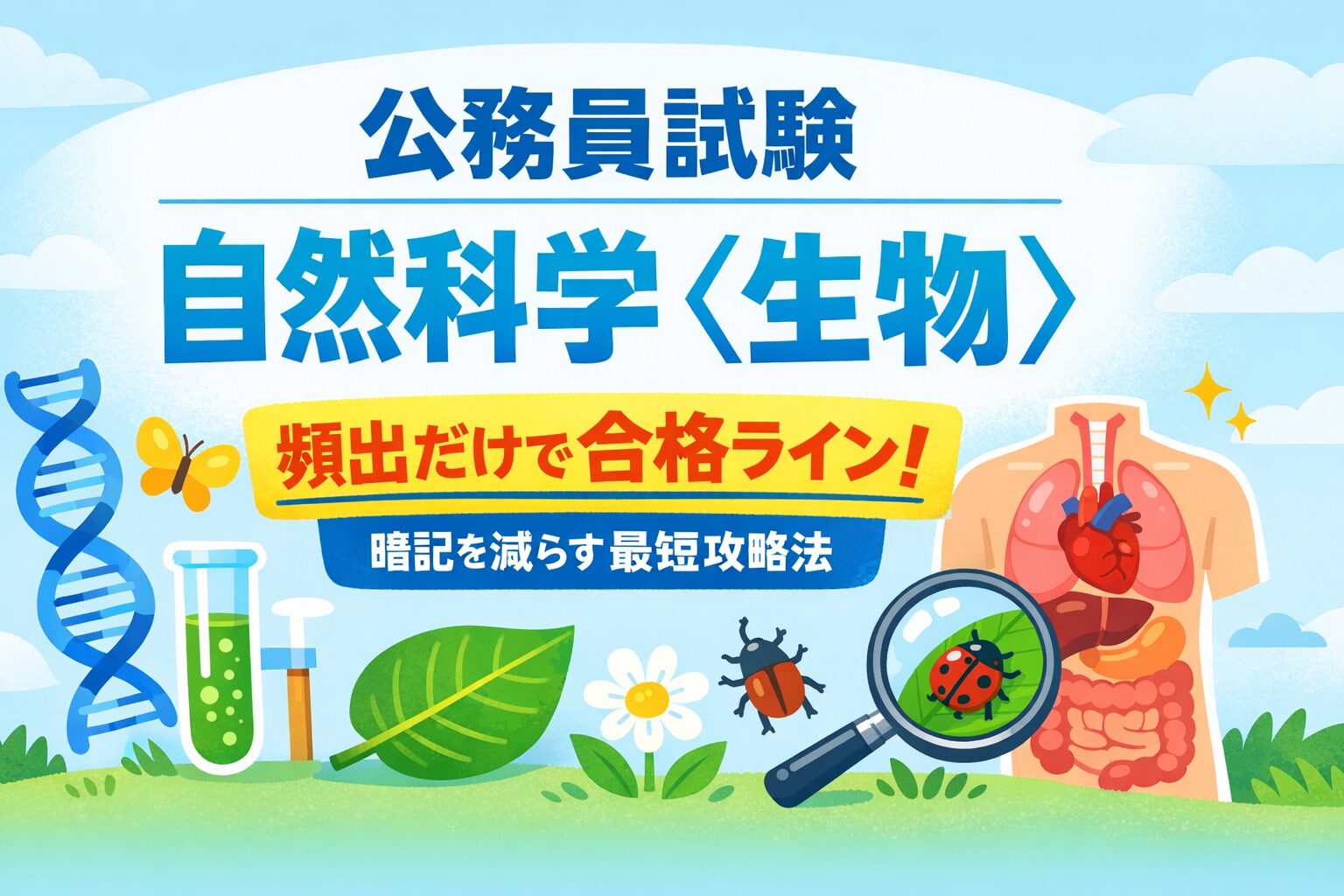 生物は「暗記量が多い」と思われがちですが、 公務員試験では頻出テーマがある程度固定されます。 だからこそ、出るところだけ集中が最短です。