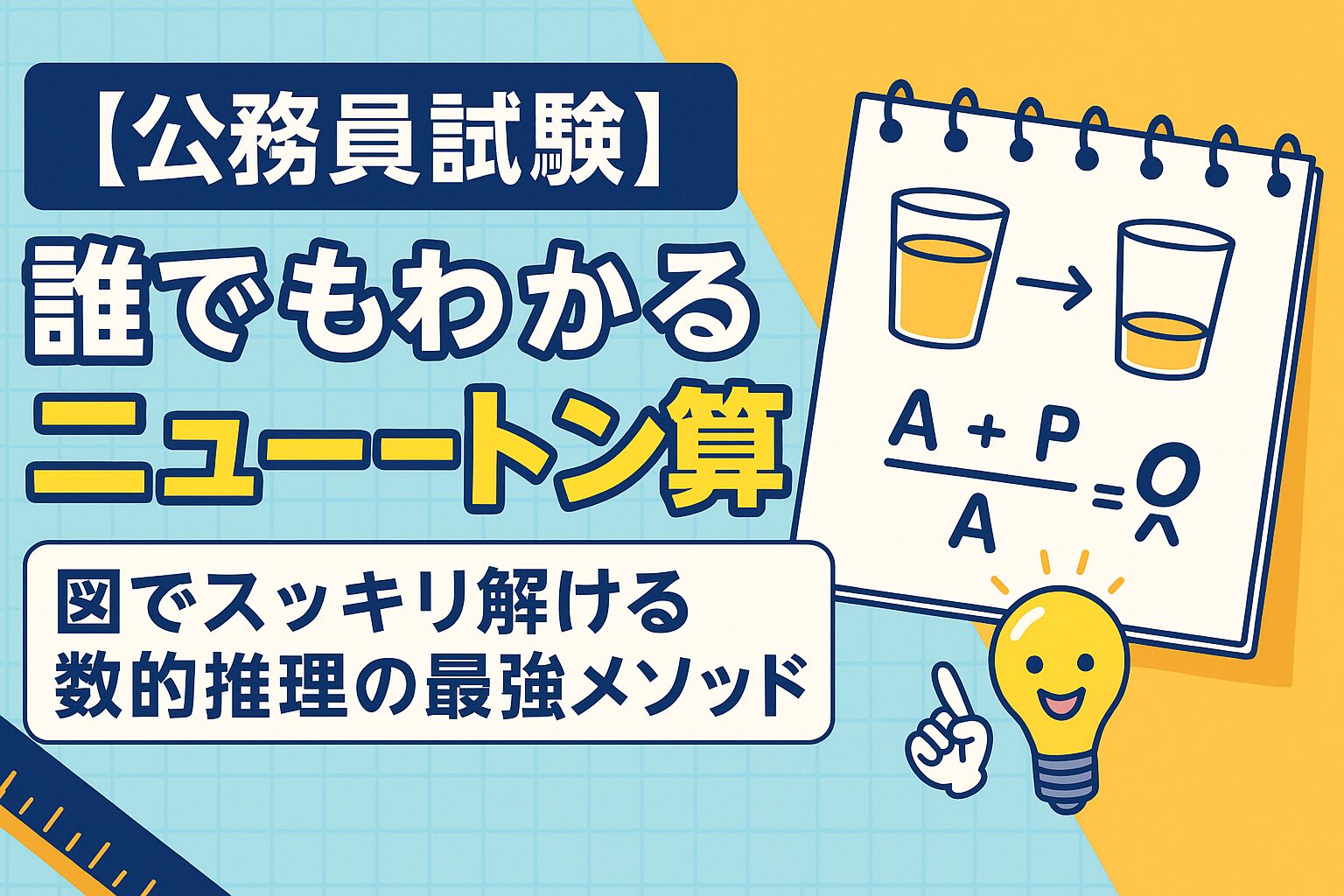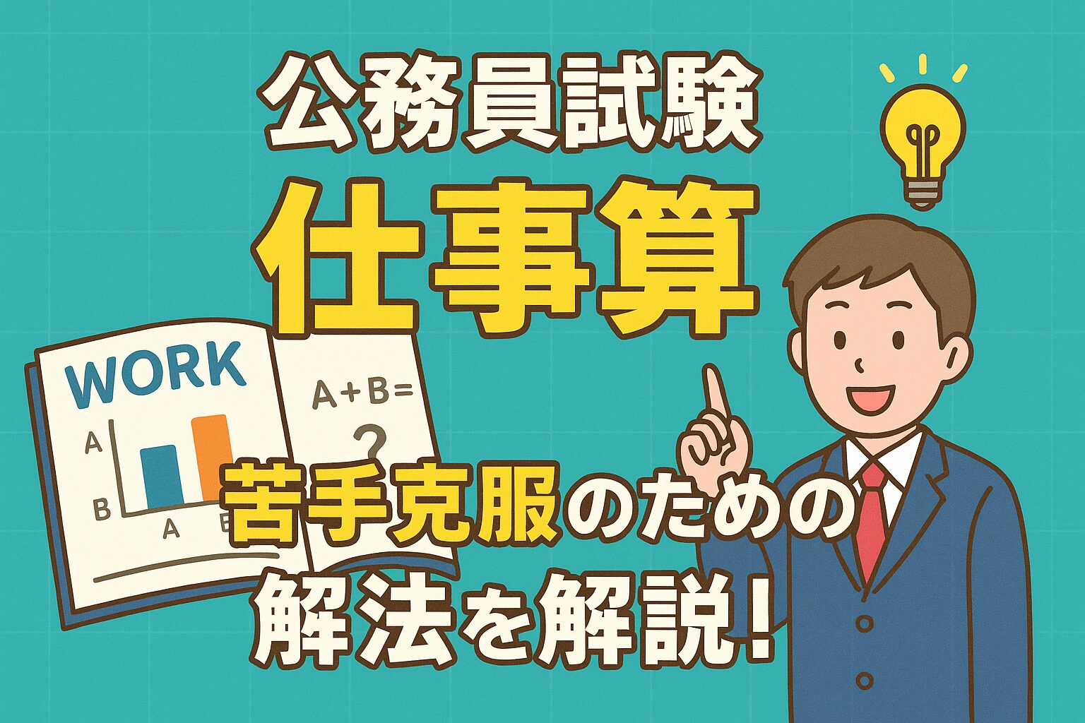 公務員試験の仕事算は「表現トラップ」が頻出です。 「同じ仕事」「2倍の速さ」「残り半分」などの言い換えに惑わされないよう、必ず式で整理してから手を動かしましょう。