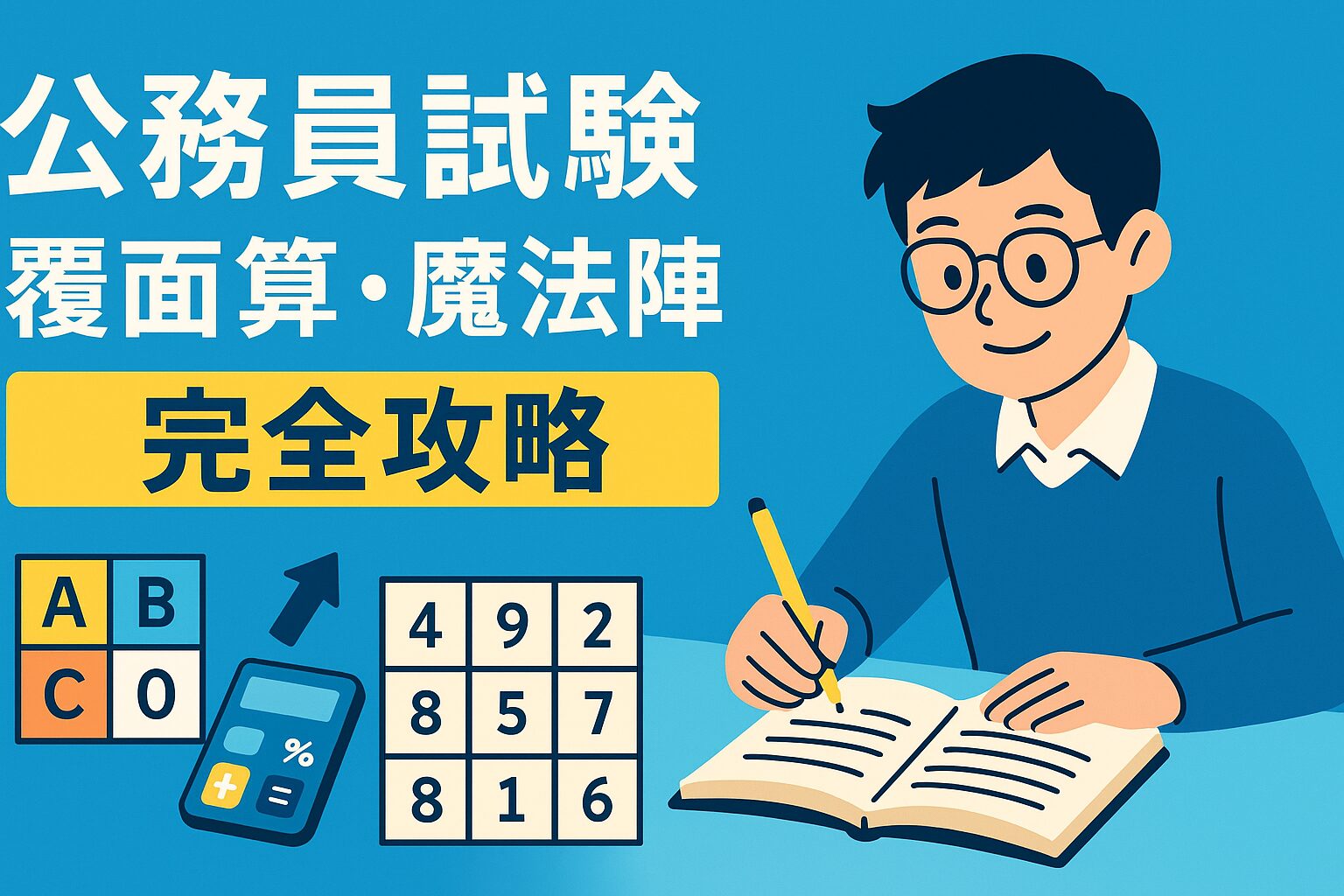 公務員試験の数的推理で毎年ねらわれるのが、文字が数字を表す覆面算と、 たて・よこ・斜めの合計が等しくなる魔法陣。計算力よりも 条件整理・一貫性チェック・消去法が問われるため、思考の順序を持っている受験生ほど有利です。
