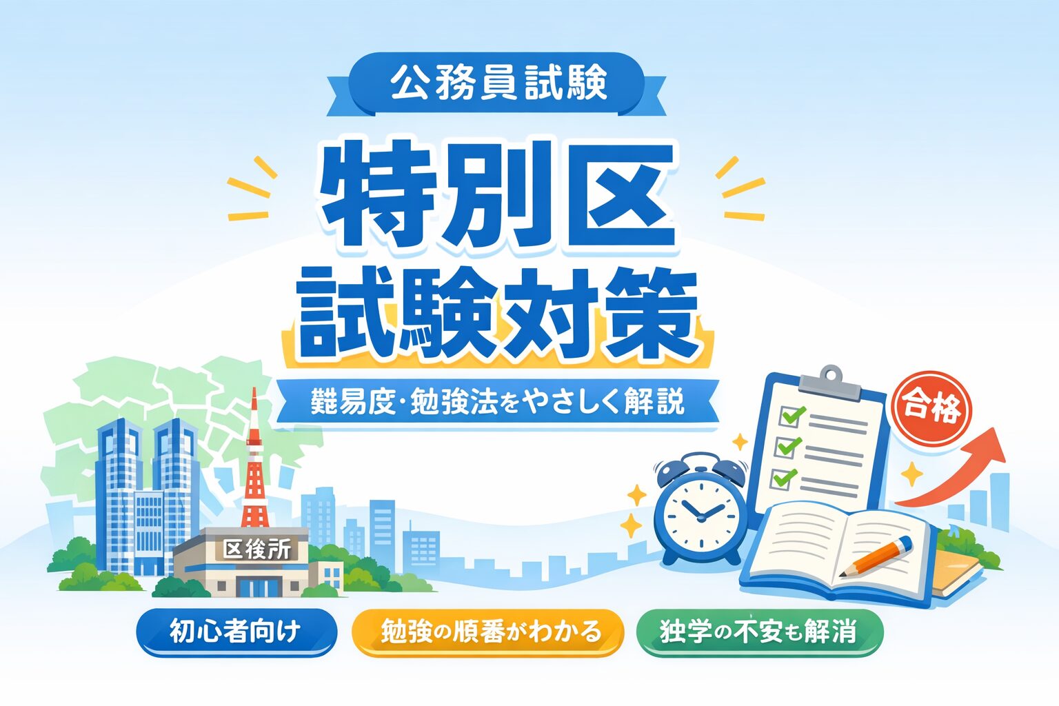 特別区は人気が高く、たしかに簡単な試験ではありません。 ですが、超一部の人しか受からない試験ではなく、 教養・専門・面接・論文をどう整理して進めるかで差がつきやすい試験です。