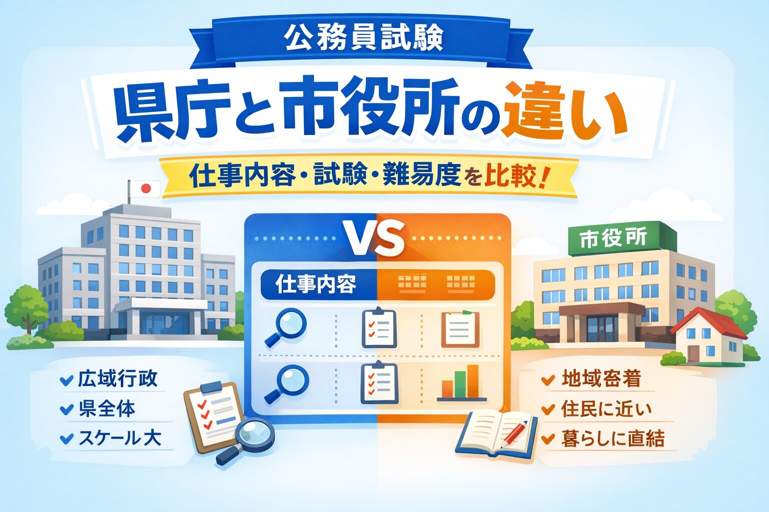 - 県庁と市役所の試験内容の違いをわかりやすく整理しよう