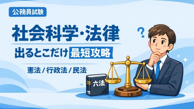 公務員試験の社会科学・法律は、条文暗記ではなく「頻出パターン」で攻略できます。憲法・行政法・民法の出るところだけを図解と例題で解説。忙しい人向け勉強法も紹介。