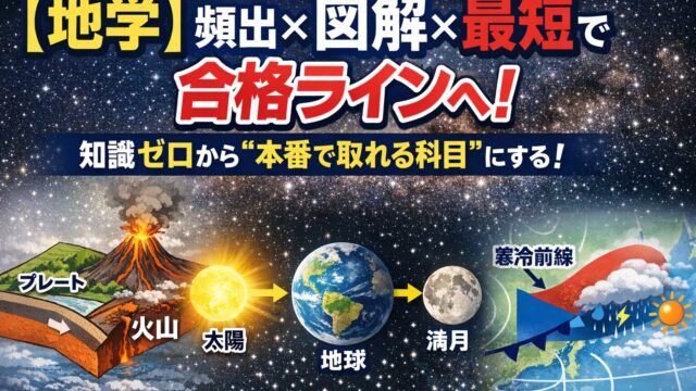 公務員試験の自然科学「地学」を最短で得点源にする勉強法を解説。プレート・地震・天体・気象など頻出分野を図解で整理。スタディングを使った効率学習法も紹介。