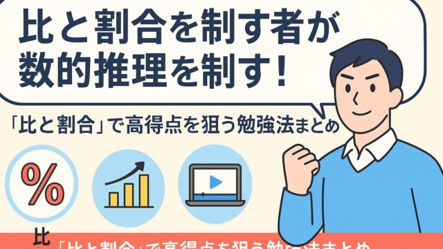 公務員試験の数的推理で頻出の「比と割合」問題をわかりやすく解説!苦手克服の考え方やスピード解法のコツ、最短で得点を伸ばす勉強法を紹介します。